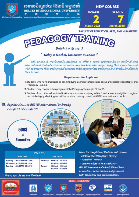 សាកលវិទ្យាល័យ​ ប៊ែលធី អន្តរជាតិ មានកម្មវិធីសិក្សាធំៗ ៥ គឺ ១- ថ្នាក់បំប៉នអង់គ្លេស និងកុំព្យូទ័រ | ២- ថ្នាក់បរិញ្ញាបត្ររង | ៣- ថ្នាក់បរិញ្ញាបត្រ | ៤- ថ្នាក់បរិញ្ញាបត្រជាន់ខ្ពស់ | ៥- ថ្នាក់បណ្ឌិត